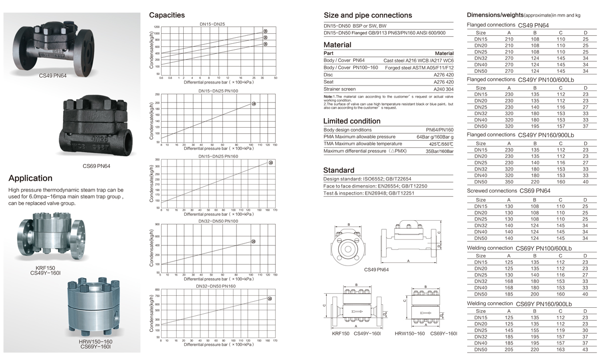 進口高壓疏水閥適用于高壓的飽和蒸汽主管和透平機的蒸汽亞臨界狀態使用。