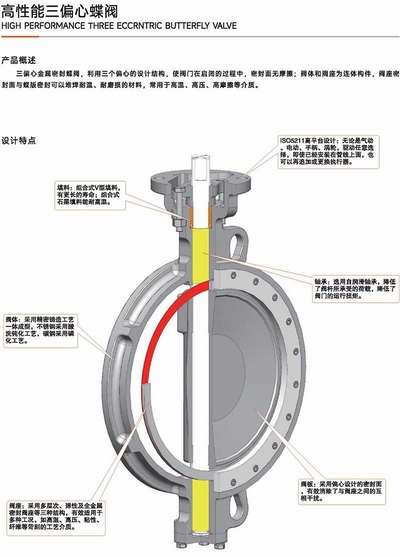 三偏心動(dòng)態(tài)補(bǔ)償:蝶板與閥座漸近接觸,關(guān)閉時(shí)自鎖密封,磨損后自動(dòng)補(bǔ)償間隙;